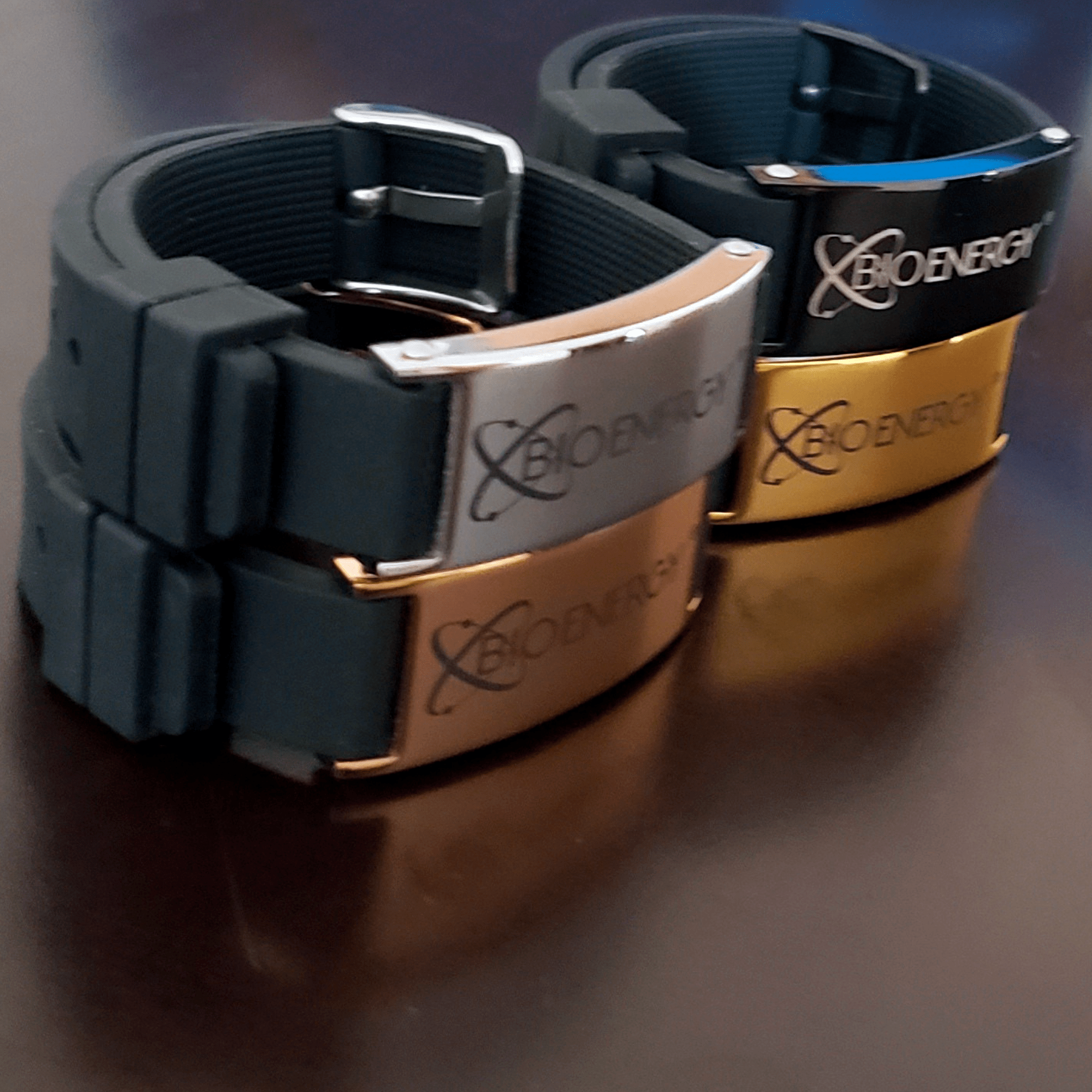 A Pulseira Bioquântica é composta por materiais neutros e biocompatíveis, como aço inoxidável 304 (resistente à água) e borracha, com um elemento chave lacrado em seu interior: um líquido quântico frequenciado.